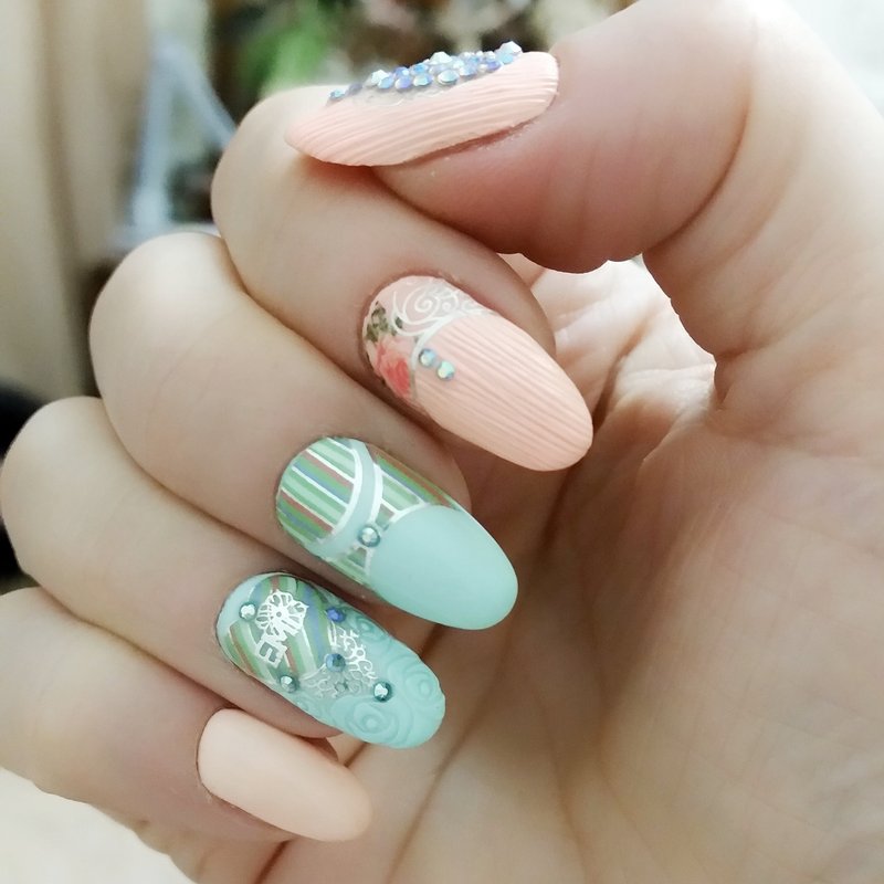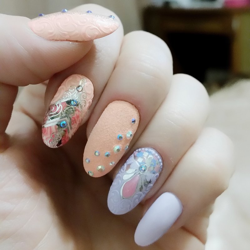 Мне понравился большой ассортимент цвета. Мастера могут подсказать то, что нужно на мою длину ногтей. Наличие разных декоративных элементов.